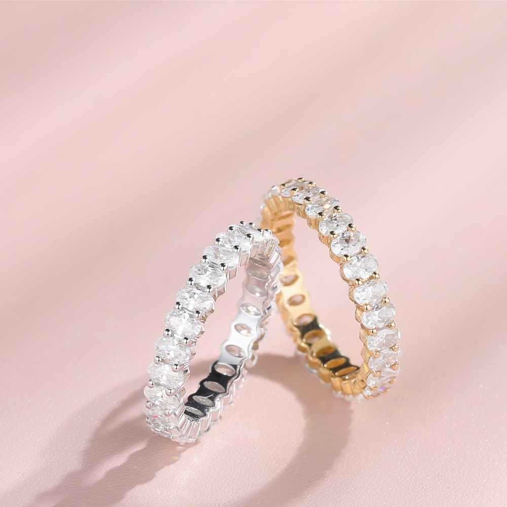 Oval Cut Moissanite Wedding Band Women White Gold Wedding Band Unique Full Eternity Stacking Bridal