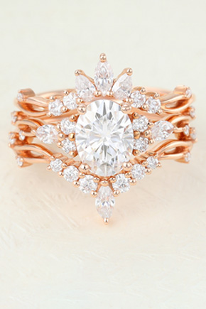 2PCS Curved Moissanite Wedding Band Rose Gold Solid Gift for Her