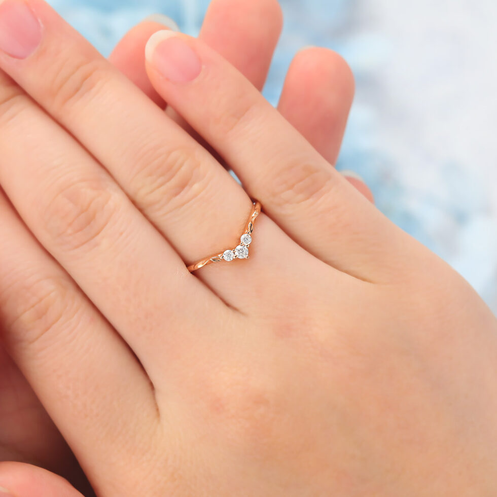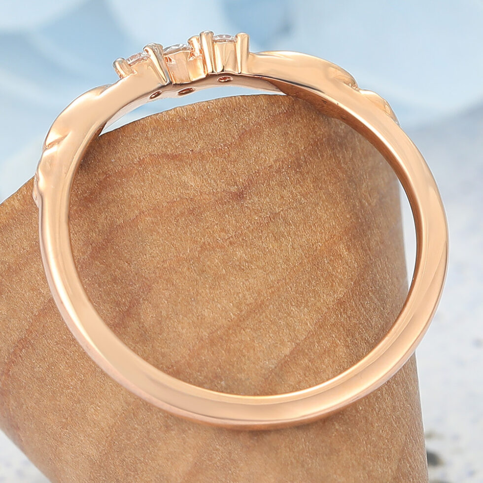 Graceful curves, shimmering moissanite clusters, and delicate leaf details — a nature-inspired band full of meaning.