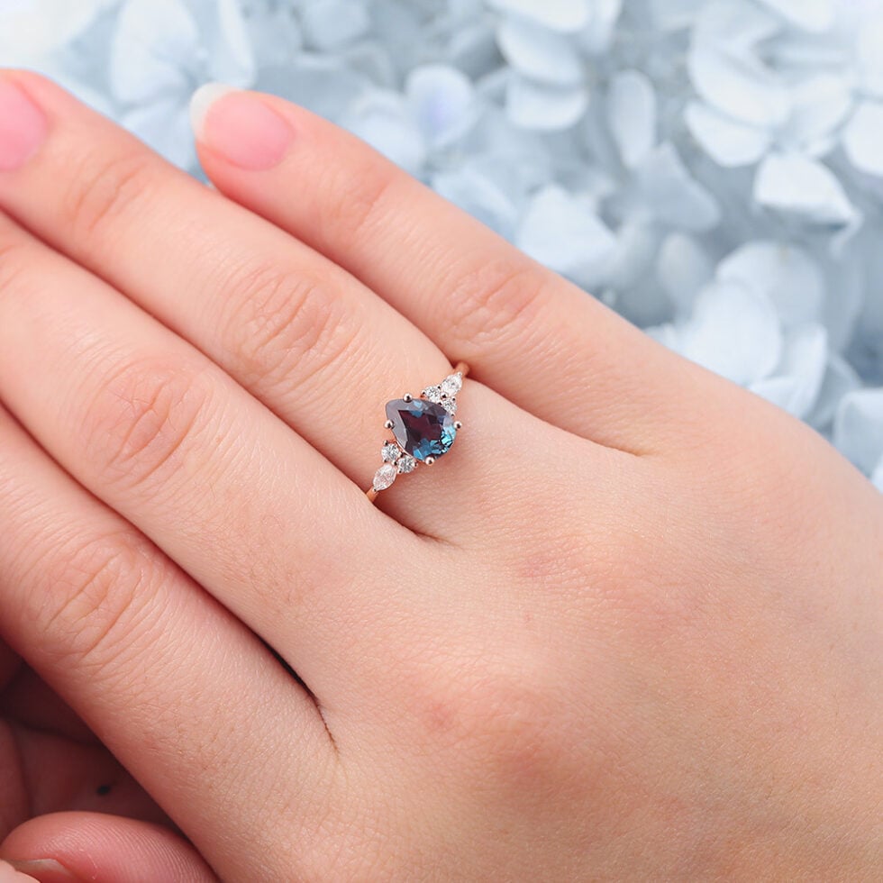 Vintage Pear Shaped Lab Alexandrite engagement ring Rose Gold Unique engagement ring Marquise cut Bridal ring promise Anniversary gift for her